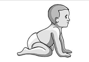対称性緊張性頸反射は、うつ伏せから四つ這いへと移行して、体が地上から高かく持ち上げられる時期の反射です。